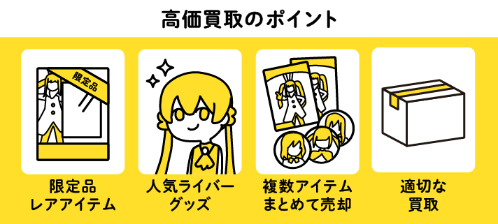 人気ライバーのグッズは、需要が高いため、高価買取が期待できます。